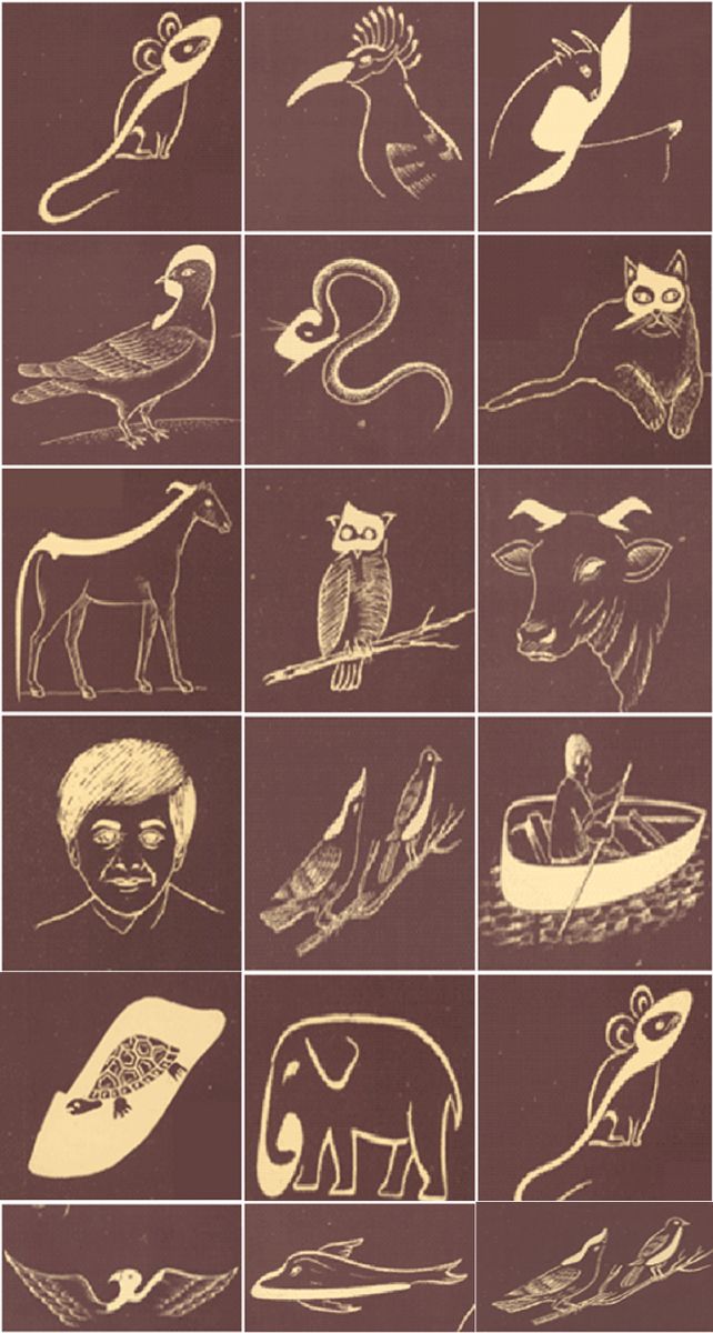 در آن زمان از تصاویر اشیا و همچنین از اصوات آنها به عنوان نماد آنها استفاده میشد (Pictogram یا زبان تصویری)؛ به طور مثال واژه «پرنده» همان شکل پرنده بود. اما به مرور آن نمادها شکلی انتزاعیتر به خود گرفت.