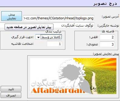 - که در قسمت آدرس تصویر لینک تصویرتان را وارد میکنید و در قسمت نوشته جایگزین متنی را وارد کنید که به عکستان مربوط باشد چون این نوشته تا زمانی که عکس لود نشده باشد به جای آن نمایش داده میشود و در قسمت فاصلهها میتوانید فاصله هاشیه افقی وعمودی تصویرتان را مشخص نمایید و در قسمت ترکیب بندی میتوانید مشخص کنید که عکس در کدام قسمت نمایش داده شود به صورت چپ چین و در قسمت چپ یا در راست یا در وسط یا بالا و سایر گزینه هایی که برای انتخاب دارید و عددی را که در قسمت ضخامت هاشیه وارد میکنید به نسبت عددی که وارد کردید برای عکستان هاشیه قرار میدهد. با ابزار بعدی این مجموعه میتوانید یک خط عمودی را در محل مورد نظرتان در پست قرار دهید. و ابزار بعدی برای رسم جدول میباشد که با کلیک بر روی آن پنجره ای به شکل زیر برایتان به نمایش در خواهد آمد: